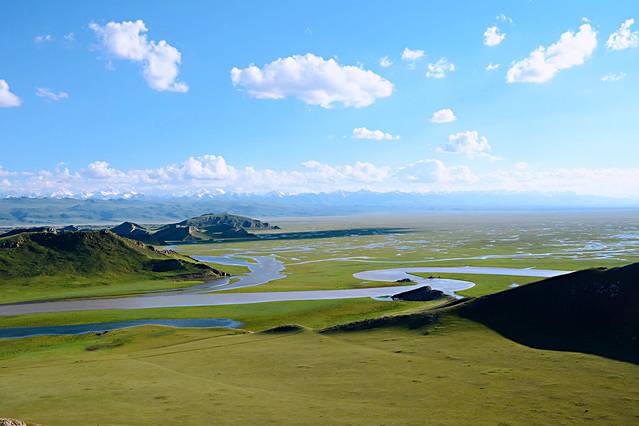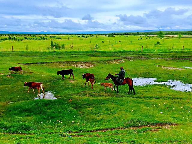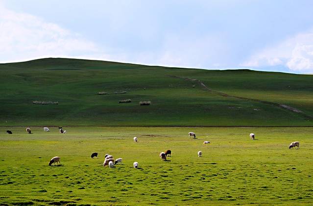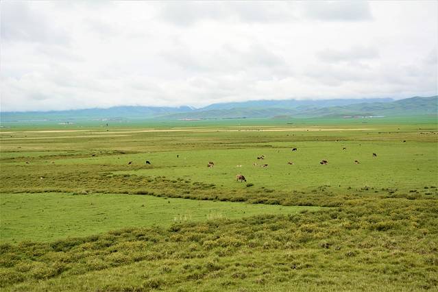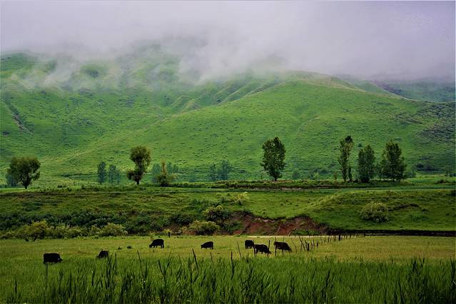 夏雨润泽着肥沃的草场,催生出一块块生命的绿洲。