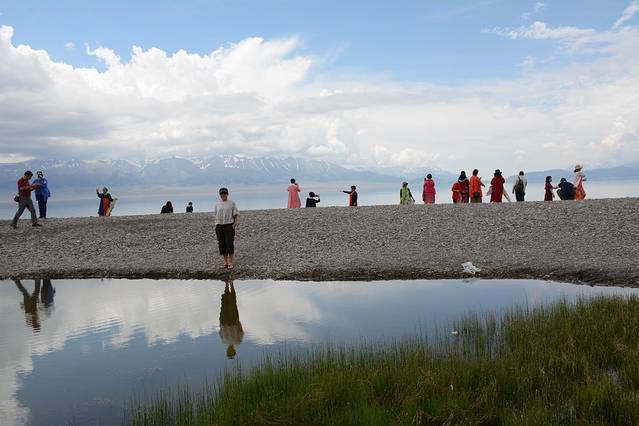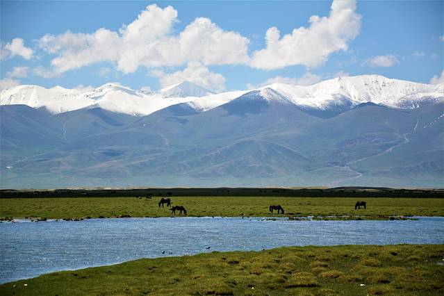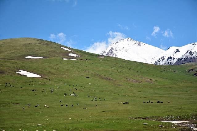 喀拉库勒湖深邃幽黯,映衬着银色的皑皑冰山。我没看到传说中的水怪,但看到马、牛、骆驼,在这爿缺氧的世界快乐成长。