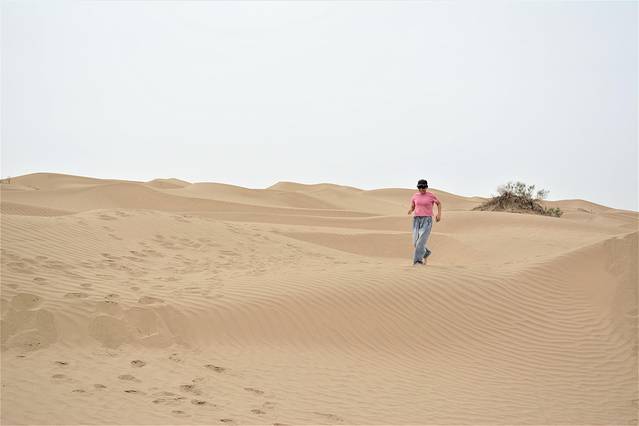 银色的白沙山绵延起伏,似银色绸带翩翩起舞。碧绿的白沙湖守侯在他的脚下,滋养着白沙山的银色肌肤。