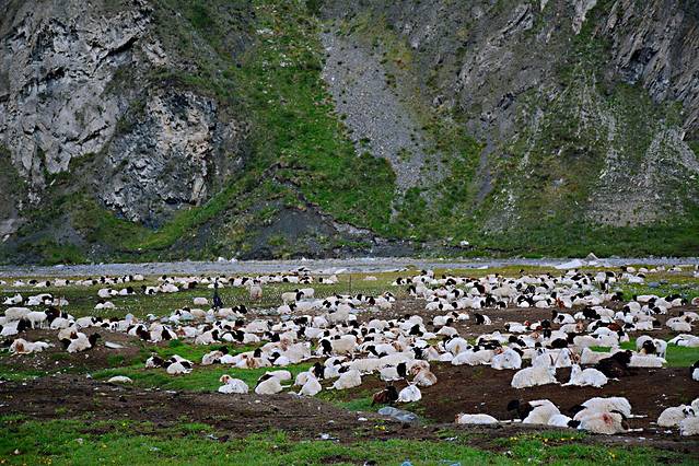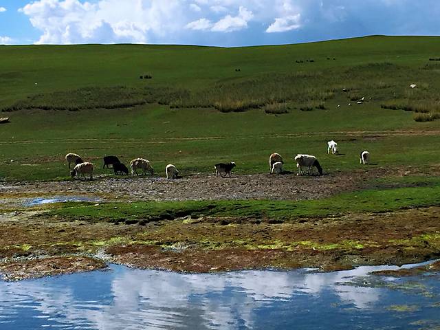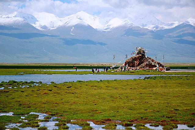 环绕着巨大的泪滴走走停停:一望无际的芳草萋萋,一望无际的野花烂漫、若隐若现的雪山皑皑。