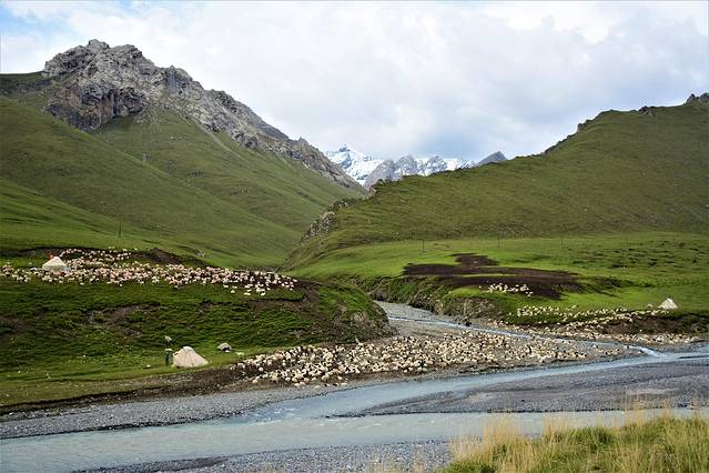 行车在路上,哪里有草场,哪里就有毡房,哪里就有牛羊。