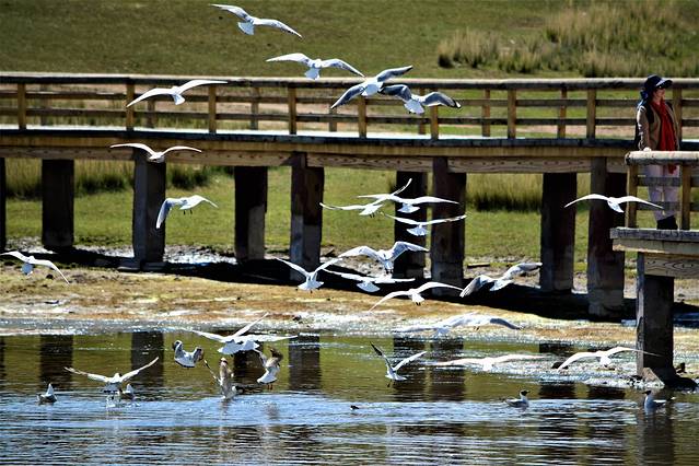 2、在巴音布鲁克天鹅湖,尽管指示牌用很大的字写了“请低声细语,不要惊扰天鹅”,仍有一群大爷大妈兴奋的大喊大叫,声音刺耳。希望外出旅行的朋友能够文明旅游,不要打扰他人,包括动物。