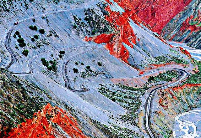 峡谷中有如巨龙腾飞的公路,见证着国人战天斗地的神勇。