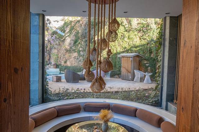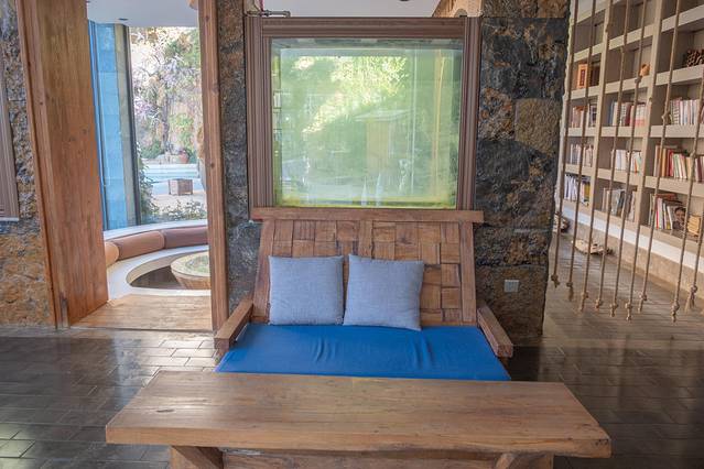 民宿内有一块区域特令我心水,就是咖啡厅后面的一个下沉式空间,设置了一张下凹的圆形沙发,非常适合大家聊天聚会,或一家人、或三五好友,舒服地靠坐在沙发上,聊聊家长里短,聊聊人生,聊聊未来……