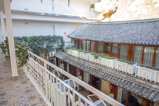 白族特色的屋顶建筑,纯白的外观,质朴而简洁。进入民宿内,百花竞放、绿意盎然,墙头也爬满了绿叶,间或掺杂着紫红色的小花,好似给美丽的房子穿上了一件更为绚丽的衣衫。这幢被绿意包围的房子,想象住在这充满生机的房间里,鼻尖常若有若无地萦绕着袅袅清香,让人好梦正酣。第二天醒来,伸个懒腰,立刻精神百倍,浑身上下都充满活力。