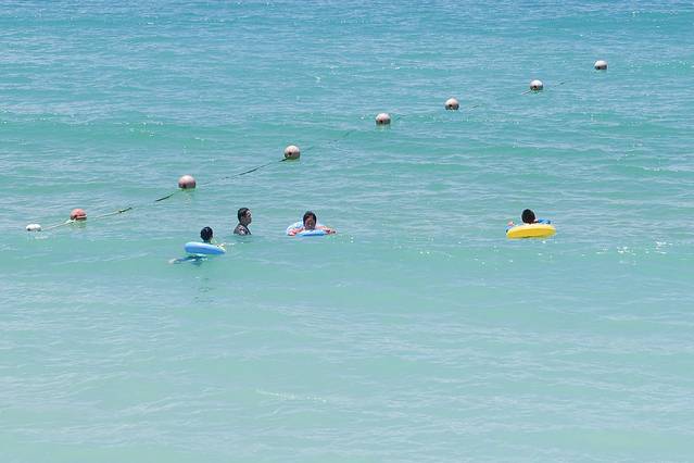 大东海 位于距三亚市市区十分钟左右车程的兔子尾和鹿回头两个山头之间,水面是月牙形的沙滩。大东海相对于三亚湾 来说海水更蓝更美,也设有游泳区域,储物和冲洗大概都是十元一位左右。