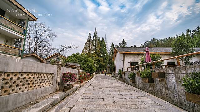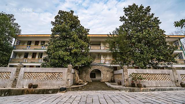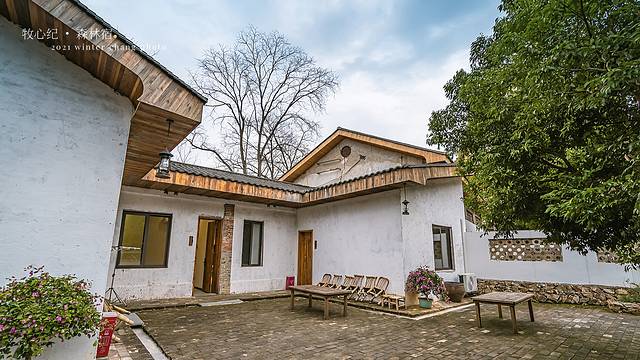 这里原本是祁禄山林场仓库,后来改建成民宿,走在这里仿佛穿越到了上个世纪八九十年代,朴素的砖瓦错落的绿树,还有年代感十足的建筑装饰和地面铺装,给人满满的怀旧感。