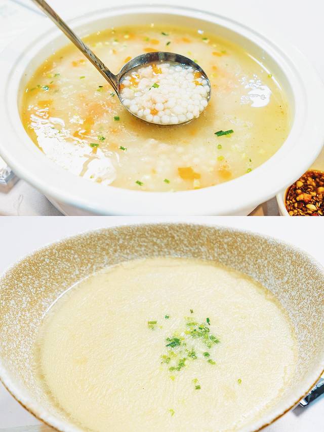 这个一粒粒白色小圆子的汤叫珍珠粉,是 江西 特色菜,口感超棒一定要点!还有下面的客家擂茶也是经典的客家美味。