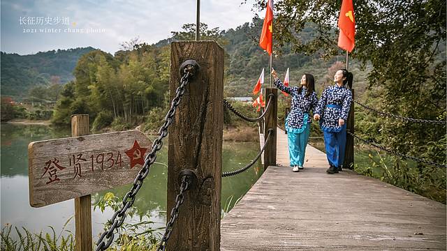 这条小道的尽头就是眼前的登贤1934,总共5.2公里,很难想象当时红军在那么艰苦的条件下,穿着破旧的草鞋背着枪支弹药走完了全程。所以只有亲身体验过,才能感受到长征路上红军的辛苦,才能真正领会什么是长征精神。