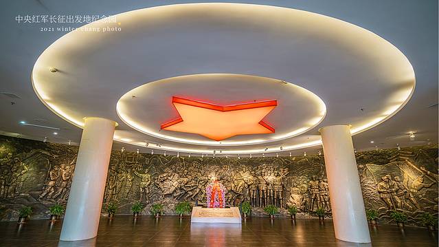 走进纪念馆,抬头便是一颗闪闪的五角星,还有展现长征胜利的浮雕墙。馆陈列分为分为“中央红军长征的背景”“中共中央秘密准备战略转移”“中共中央和中央红军主力集结 于都 ”“中共中央和红军主力夜渡 于都 河出发长征”“永远的长征”五个部分,上百件革命文物值得你拿出半天时间细细观看,声光电多媒体等各种展陈方式,让我愈来愈体会到革命战争年代先辈们的不容易。