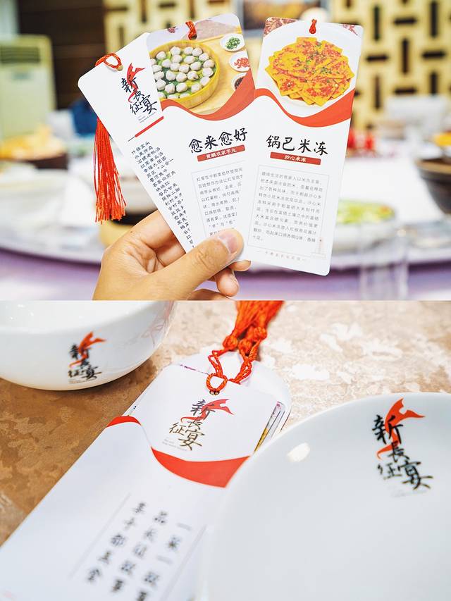 饭桌上还会有菜品介绍的书签,吃完还可以带走留作纪念。