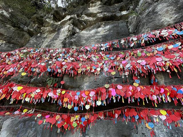夫妻峰脚下的观景台,挂满了各种许愿锁和许愿牌,也不知道,在风中摇曳的这些美好祝愿,是否都以实现~
