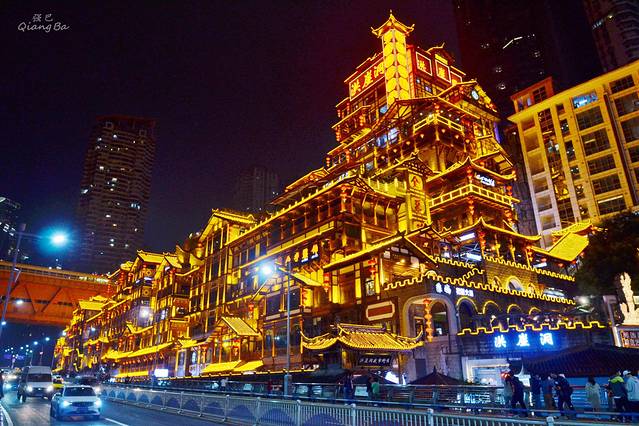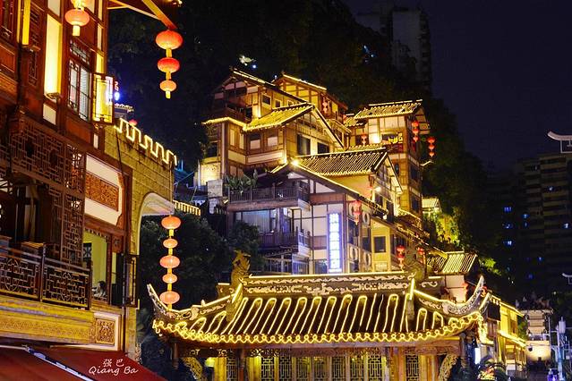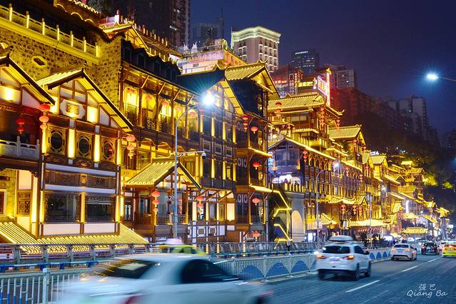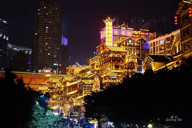 很多网评说洪崖洞的夜景与日本动画《千与千寻》的场景极度相似,我没看过《千与千寻》不作评论,但一个是现实世界,一个是动画场景,即使有点相象,恐怕也是貌似而神非吧。