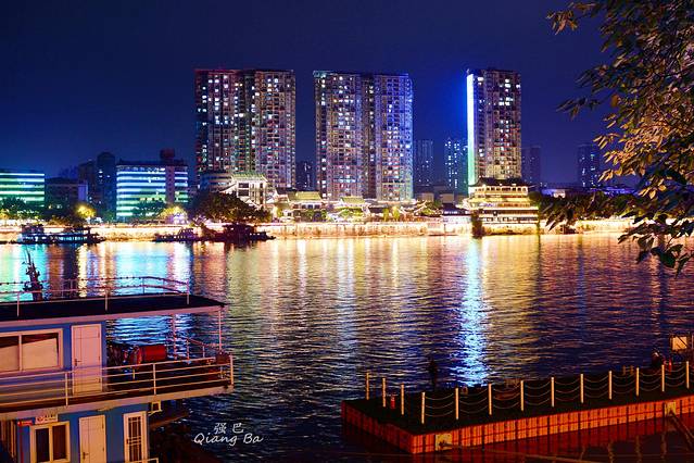 晚上的凌云路清凉宁静,偶有三几个游客在此散步,岷江就在路傍,对岸是灯火通明的乐山城区。
