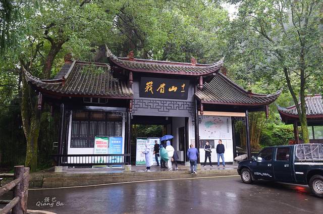 在万年寺停车场下了观光车,停车场距万年寺还有几公里的山路要走,山中下着蒙蒙细雨,走路上山的游客不多。