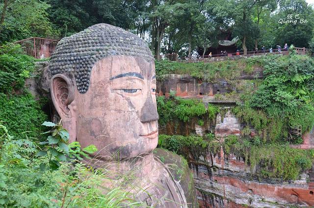 在山上可以左右环绕着看大佛,近距离看大佛,真的不是一般的大。大佛高71米,头高14.7米,耳长7米,鼻和眉都长5.6米,嘴和眼长3.3米,颈高3米,肩宽24米。
