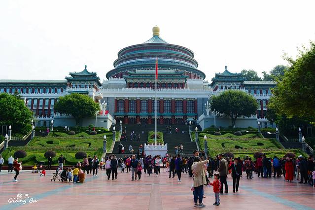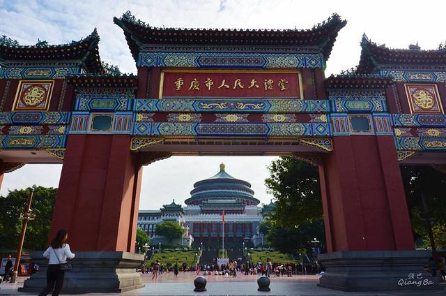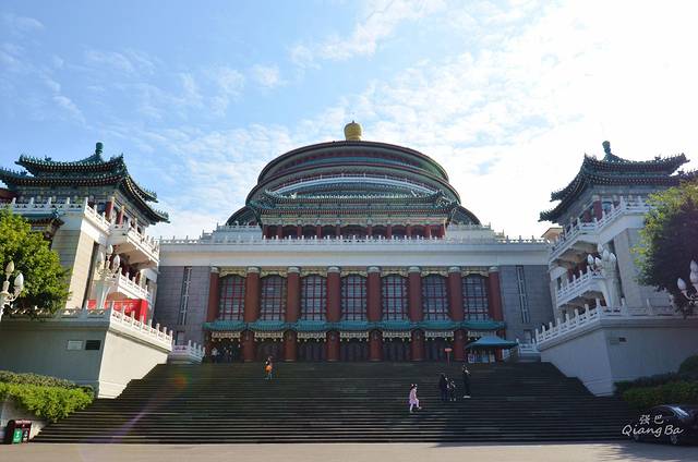 重庆人民大礼堂1952年开建,中心礼堂三层圆顶参照了北京天坛祈年殿设计,1954年竣工。
