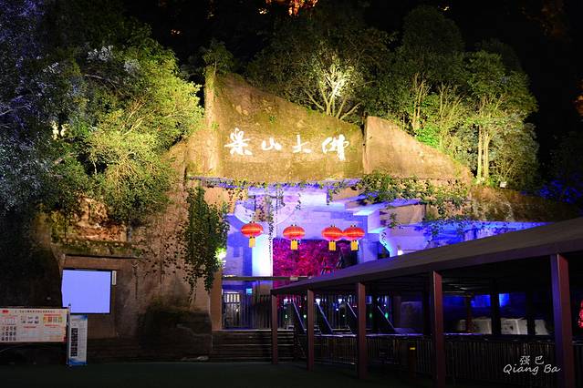 路傍巨大的石刻“乐”字也亮着变幻的灯光。