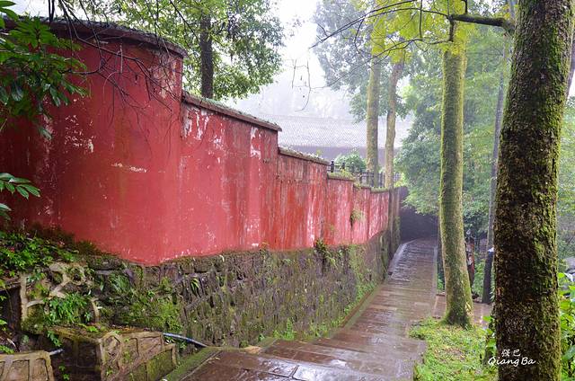 离开万年寺,继续在山里行走。图为白龙洞红色外墙。