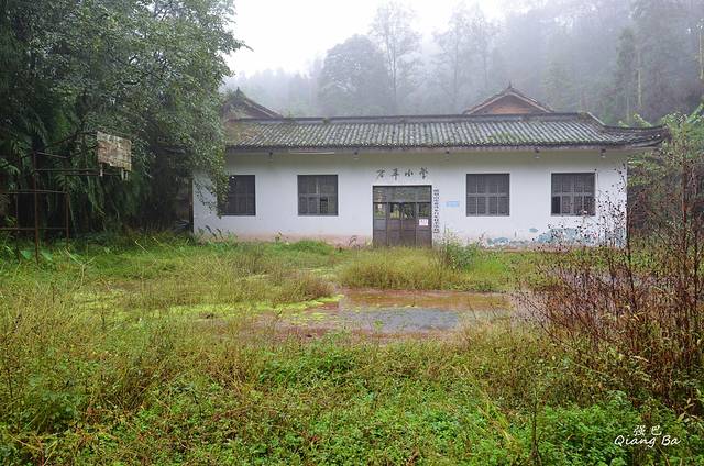 途经一个已经荒废的学校----万年小学,学校是几幢砖瓦平房,校门前还有个的破旧篮球架,估计以前是为山里的孩子读书而建,可能学生还不少呢。