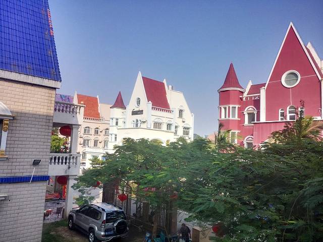 在海泰别墅区,整个小区都是那种别墅酒店。开车去侨港风情街,都是海鲜加工店,还没有老街好玩,逛了一圈没啥意思就吃了个山什么鸭饭的就回酒店了。