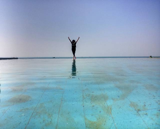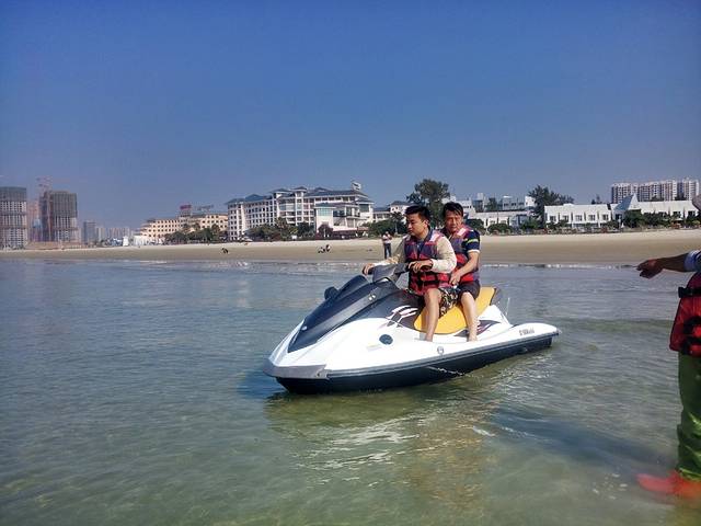 骑摩托艇一百八十块钱半个小时,把父母都抓上去溜了一圈。旁边有个婚纱摄影基地可以拍照,孩子不小心被蜘蛛咬了哭闹,没怎么玩就回酒店了。