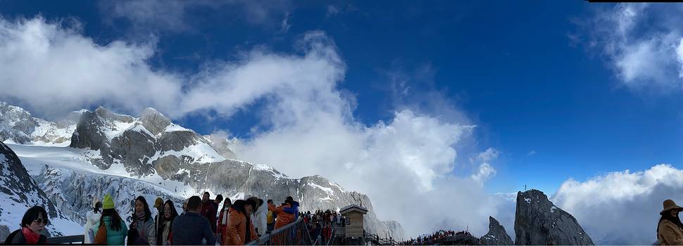 古城在忠义市场外到玉龙雪山有直达的旅游大巴,提前在小程序上买大索道的票,140元,记得预约好时间,因为他必须在那个区间范围内进去,时间差好像是可以提前半小时,其余的早了迟了都不行。在大巴进入玉龙雪山的范围内,还会收取一个古城费用啥的,我记不清楚是50还是100一个人了,不是诈骗,正常收取就可以啦,然后你们就会从大巴车上下来,按规定时间进场后检票,开始上区间车,送你们到索道口喽,在索道口我还租了件羽绒服,我觉得还是挺有必要的,除非你自己带羽绒服了哈,我只有一件防风衣,真的挺冷的,押金的条条记得收好,最后要退掉的哦,然后就开始你们的征服雪山之旅喽,4680我们来了~山顶上烤肠真的好好吃哈哈哈哈哈哈,就像去泰山黄山华山顶上的方便面一样,不吃感觉没有灵魂哈哈哈哈哈哈