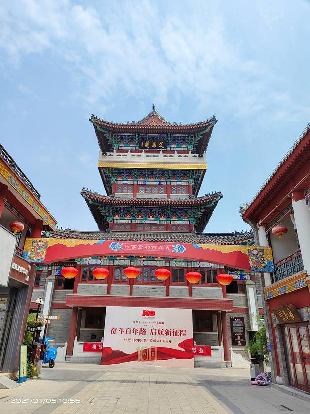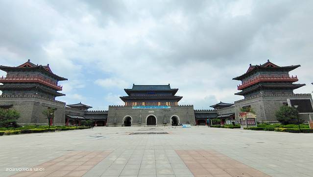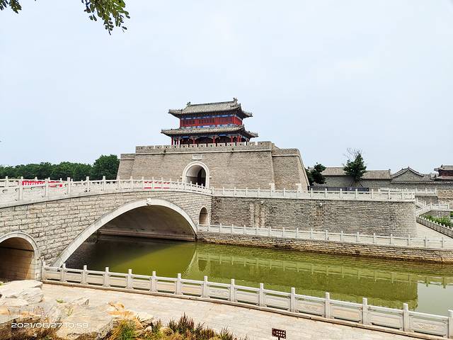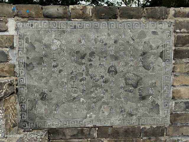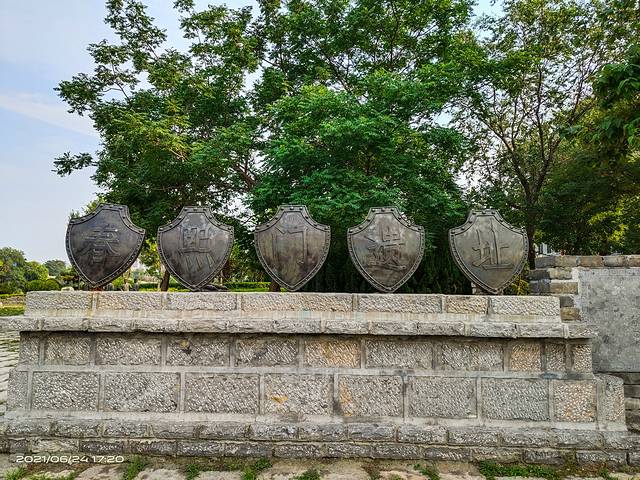 聊城中华水上古城春熙门。聊城古称东昌,东城门作为历史遗址位于聊城楼东大街东首、东关桥以西,在遗址上竖立着五块古铜色的盾牌,上面刻有“春熙门遗址”五个大字。