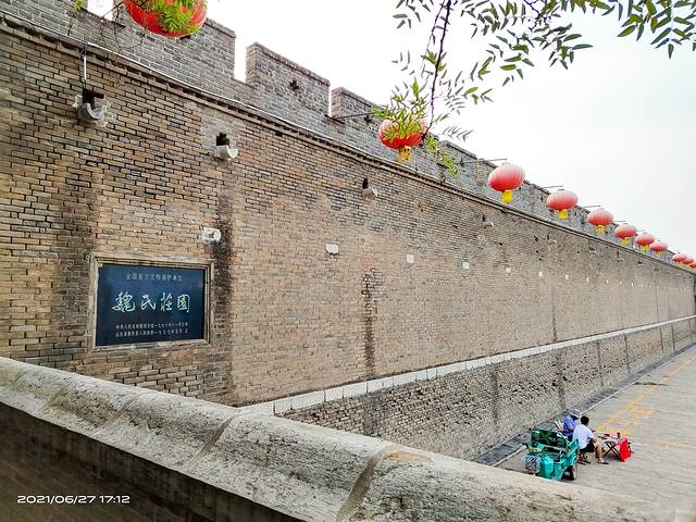 魏氏庄园,位于山东省滨州市西南部的魏集镇,建于清光绪十六年,十九年建成,是缙绅地主魏肇庆的宅第。该庄园布局巧妙,结构合理,城垣、住宅房屋相互为用,巧夺天工,是一组独具特色的城堡式民居建筑群,以其显著的军事建筑特点闻名远近内外,是中国古代北方民居建筑的杰出代表,和烟台的牟氏庄园、四川大邑的刘文彩地主庄园齐名,并称为中国三大庄园,1996年被国务院公布为全国重点文物保护单位,为国家AAA级旅游景区。我们在魏氏庄园游玩了一个小时。