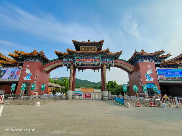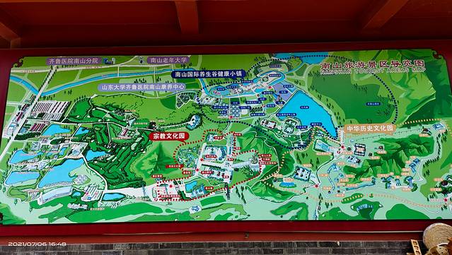 龙口南山旅游景区坐落于山东省龙口市黄城西南七公里处,最高海拔480米,是一个融宗教文化、历史文化、旅游文化、饮食文化、商业文化于一体的大型旅游文化景观。景区有宗教文化园、历史文化园。景区内的南山禅寺、香水庵、文峰塔、南山民俗文化园等景点均系代表景观。世界最大的锡青铜坐佛南山大佛和国内最大的室内玉佛南山药师玉佛是景区两大亮点。景区门票120元,60岁以上老年人门票半价,门票两天内有效。景区观光车25元。由于时间比较晚了,我今天只游览了宗教文化园。