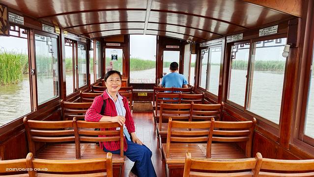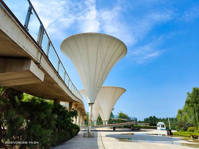 我们进入景区,从景区大门乘坐观光车直接到了景区最远处的远望楼码头。观光车的司机很好,沿途给游客介绍景区情况。远望楼码头是坐游船去观赏河海交汇景观乘船的码头,可惜,游船停运了。我们在码头转了转,登上远望楼观赏风景。之后,乘坐黄河故道的游船游览黄河故道风光,前往黄河口生态旅游区雁湖景区,游船票价25元。在这里观看了大雁喂食表演。然后,去鸟类科普乐园观看鸟类放飞表演。之后,乘坐观光车到下一站天然柳林。最后,返回到景区大门口处的黄河三角洲鸟类博物馆参观。到下午一点,游览才结束,在这里游玩了约四个小时。
