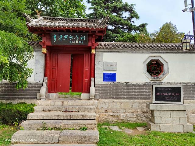 范公亭公园。宋代著名女词人李清照和她的丈夫金石学家赵明诚,住在青州时常到顺河楼游赏。他们常常在归来堂前的花月之下,对酒赏花,唱和诗词。李清照的创作,独成婉约一派,还有如“生当作人杰,死亦为鬼雄”包含铮铮硬骨的诗词,在中国文学史上享有崇高的威望。为了纪念著名词人李清照,1988年在范公亭公园内建李清照纪念馆。由于李清照纪念馆正在维修,不能进入参观。