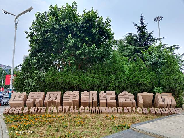 潍坊世界风筝都纪念广场,老百姓俗称风筝广场,位于潍坊最繁华的老商业中心——胜利东街和四平路交汇处,紧靠潍坊母亲河——白浪河,独有的沿河优势更为其白金位置增添含金量,是潍坊的城市地标。广场占地5万平方米,是潍坊市中心最大的市民休闲广场,将市政广场、旅游广场、商业休闲广场巧妙融汇,三而合一,以风筝文化为主题,是潍坊市对外展示的窗口。