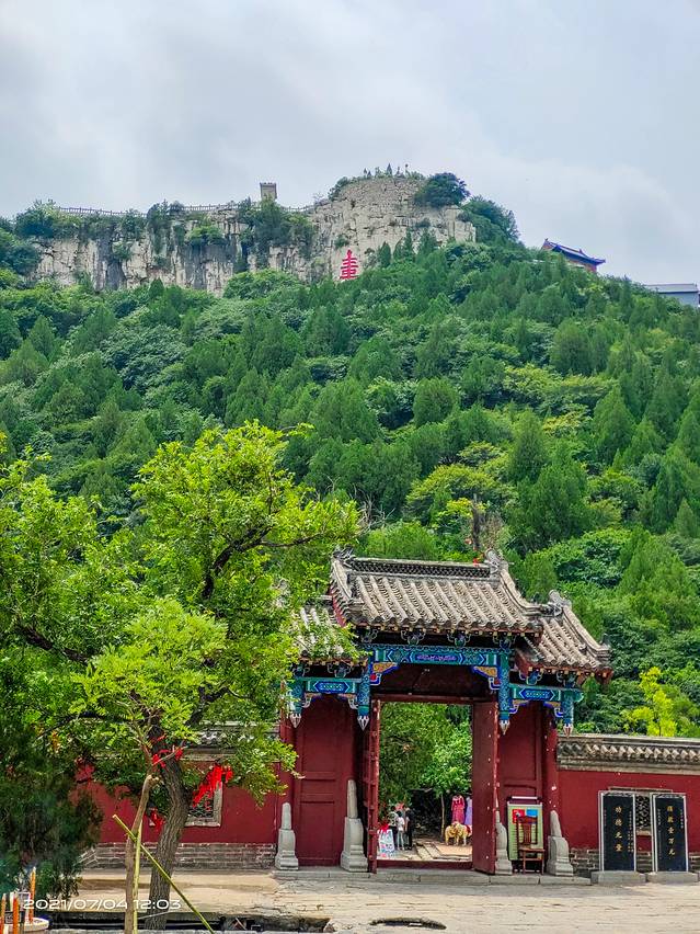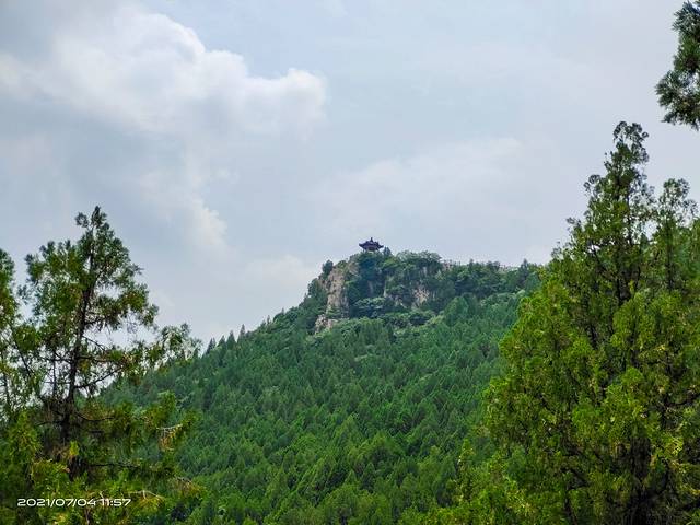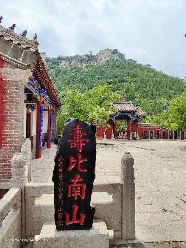 云门山望寿阁,位于北极山腰,由正阁、东西厢房和垂花门组成。置身阁中,仰望南山,恰好望见“寿”字,故名望寿阁。
