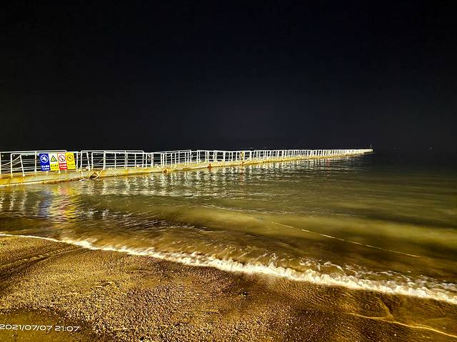 晚上住宿蓬莱豪庭酒店,房价127元/间,酒店位置好,距离海边很近,房间大,设施全,附近餐馆、超市很多。晚餐在酒店旁边的后厨餐馆品尝海鲜,味道不错,有点小贵。晚饭后,到酒店附近的蓬莱海滨浴场看夜景,海滨浴场休闲的人不少,海滨一边是蓬莱阁景区,另一边是八仙过海景区,夜景不错。漫步在海边,海风吹着,凉飕飕的,很是惬意。