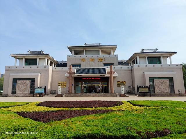 青州博物馆坐落在风光秀丽的古青州城西北角,与范公亭公园毗邻,建筑面积12000平方米,陈列面积达7000平方米,八个展厅,分别为:青州简史陈列厅、陶瓷陈列厅、龙兴寺佛教造像精品厅、古代书画艺术厅、石刻雕塑陈列厅、石刻碑碣陈列厅、玉器陈列厅、青铜塑像陈列厅。青州市博物馆外观整体设计为一古典式民族建筑群,檐牙高啄,金碧辉煌,而馆内收藏的文物已达两万件,是中国规模最大、收藏文物最多、门类最全的县级博物馆,2008年青州博物馆被国家文物局评为&国家一级博物馆,是83家入选单位中惟一的一家县级综合性博物馆。“宜子孙”玉璧、龙兴寺佛教造像和明代赵秉忠的状元卷是青州博物馆三大“镇馆之宝”。
