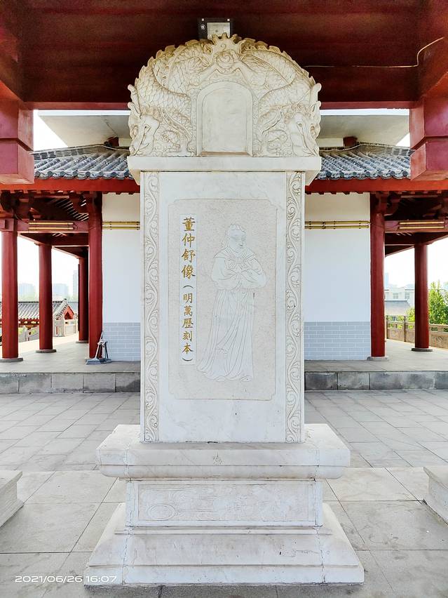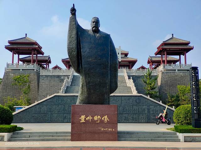 董子文化园位于德州市经济开发区,双层的仿古建筑檐牙交错,园区设计可谓曲径通幽,