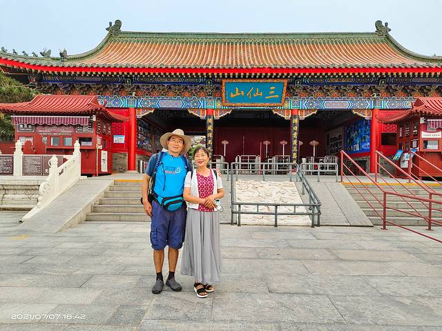 蓬莱三仙山景区,位于蓬莱黄海之滨,西与八仙过海景区、三仙山温泉相毗邻,北与长山列岛隔海相望,是一处集旅游观光与休闲度假于一体的综合性景区,更是山东半岛黄金旅游线上的一颗璀璨明珠。整个景区由和气大殿、小怡和园、蓬莱仙岛、方壶胜境、瀛洲仙境、瀛洲书院、艺术博物馆、蓬莱历史文化集锦、玉佛寺、万方安和、歌舞大剧院等景观组成。景区门票120元,60岁以上老年人半价。景区很大,值得游览的内容很丰富。我们在这里游览了约三个小时。