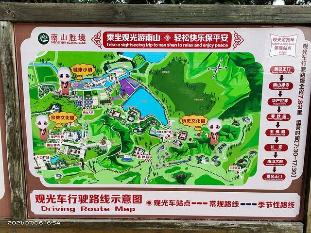 由于昨天下午时间晚了,只游览了南山风景区宗教文化园,而且,宗教文化园的南山玉佛殿已经闭馆,没有进去游览。所以,今天上午继续到南山风景区游览。乘坐景区交通车,先去历史文化园游览春秋园、唐朝园、宋朝园,然后乘坐景区交通车前往龙口南山风景区宗教文化园玉佛殿游览。中午12点离开龙口南山风景区。