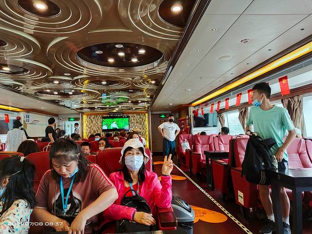 为了方便,报名参加了蓬莱当地旅行社的长岛一日游的旅游团。早上7:40出发,到蓬长客港乘坐游船前往长岛,上午九点半到达长岛。在长岛游览了九丈崖、月牙湾、仙境源等景点,下午17:10回到宾馆。长岛一日游团费120元/人,仙境源观光车票50元,60岁以上老年人购买25元半价车票。中午,旅行团安排的自费海鲜自助餐,一人88元,自愿选择。感觉长岛一日游行程安排得不错,比自己去节约时间,也省事,导游一路讲解得也挺好。中午的海鲜自助餐也挺丰富的。
