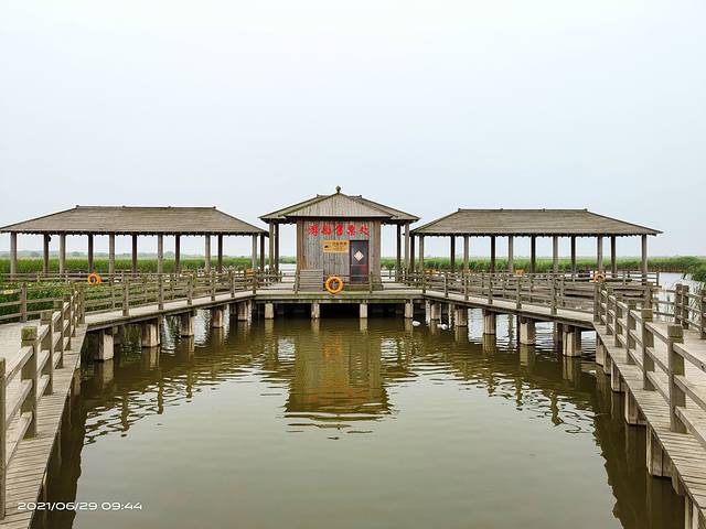 黄河口生态旅游区新滩码头。在这里乘坐黄河故道小游船去大雁观赏区。
