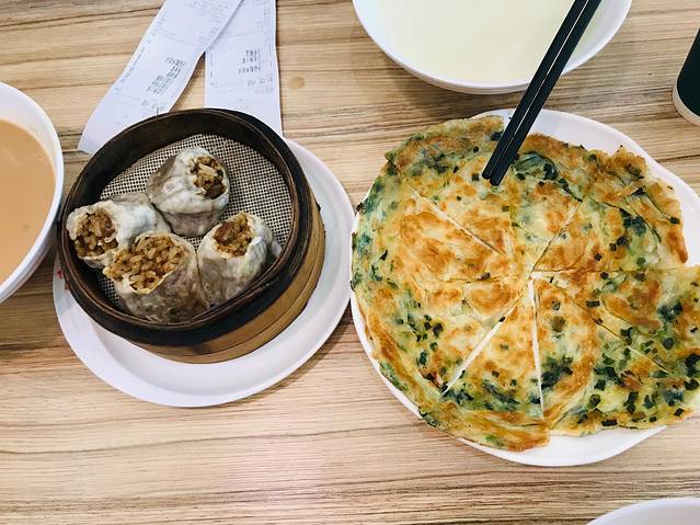 这个烧麦也特别的好吃,糯米黏黏的口感加上肉的香味,做的一点都不腻。葱油饼也是好评,豆浆和米糊的绝配。