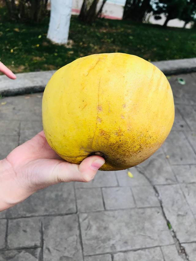这个季节,柚子树上挂满了金黄的果子,试图自己去摘一个,实在是够不着,只能在地上捡了一个掉下来的,后来碰到几个姐姐,这里的工作人员在发放,每个人可以领一个哦。