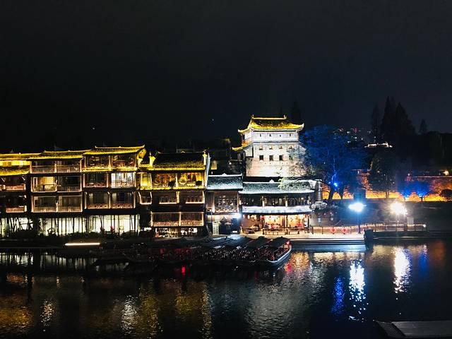 凤凰古城今年12月份刚刚开通高铁,从郑州有直达高铁,从长沙过来也只需要2个多小时,真的是方便多了。我们下午3点多从长沙出发,将近6点到达凤凰古城北站,在这里打车还算方便。车辆向凤凰古城行驶,慢慢我们就被大山包围了,也感受到了来自苗寨的神秘气息。