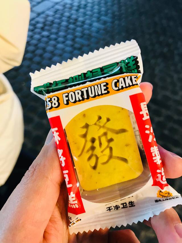 强烈安利这个贰伍捌的绿豆糕,真的超级超级好吃,而且都是麻将的形状,超级可爱。这个发财是蛋黄口味的,还有一个椰蓉拿铁的也超级好吃。