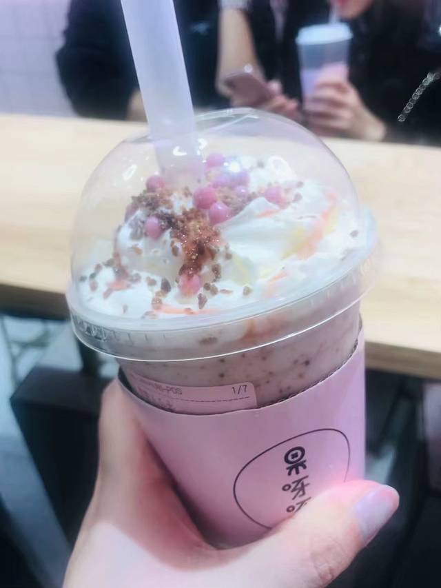 除了茶颜悦色之外,这个果呀呀也非常好喝哦,而且粉粉嫩嫩的,太少女心了,超级适合拍照。