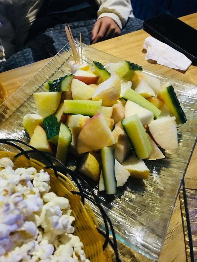 长这么大真的第一次,第一次看到酒吧的果盘里有黄瓜,而且不是那种水果黄瓜,真的是那种做菜用的黄瓜,而且这一盘199。。。。。。。能想象到我们看到这个果盘的时候,那种震惊的表情吗?我到现在都不敢相信,哈哈哈。