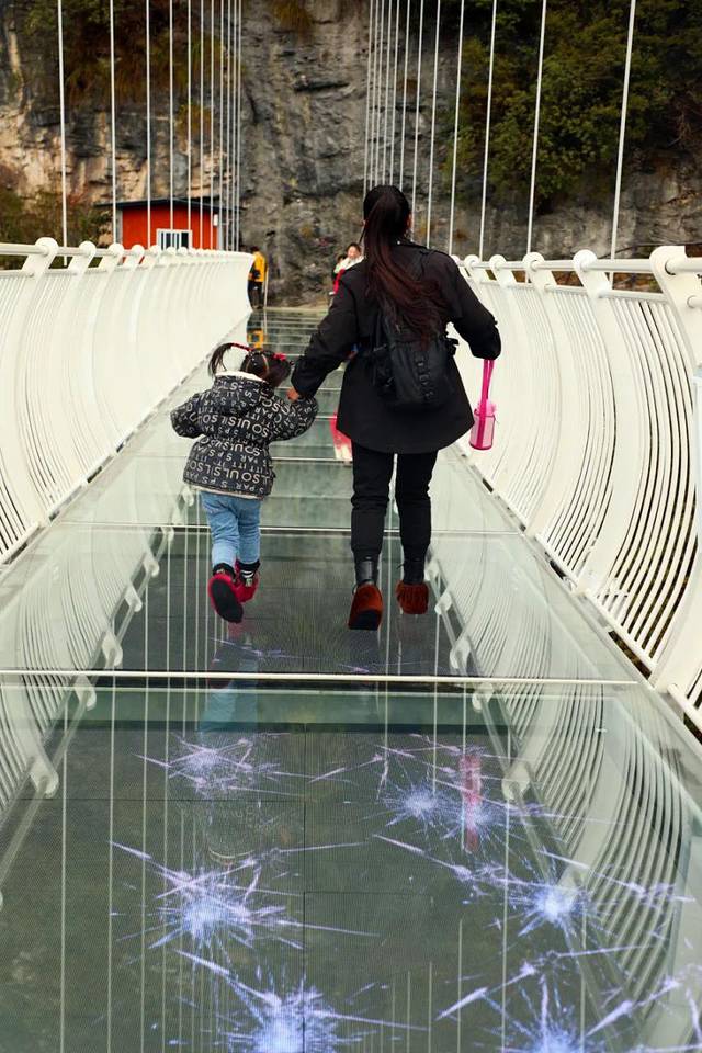 据了解,这里新增了玻璃桥面的5D特效,有玻璃桥面5D裂缝、花朵等多种特效,解锁玻璃桥的新玩法。现在的玻璃桥不仅是钢索玻璃桥,更是与大家互动的、有温度的长空天际线,一定要来体验哟~