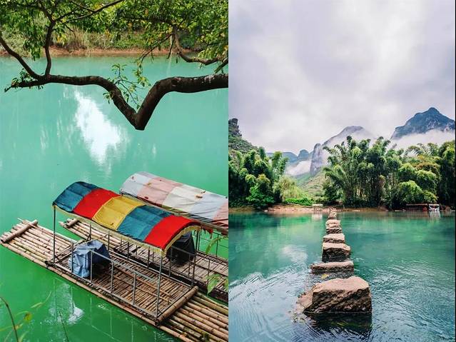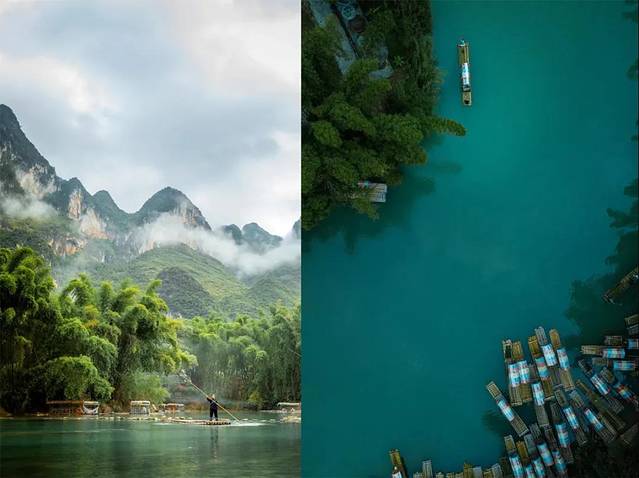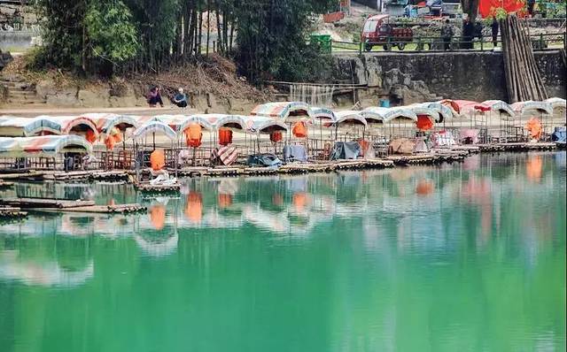 游客们或悠闲散步,或乘船荡漾在河面上,尽情地感受这里的好山好水,享受着美好的慢时光。