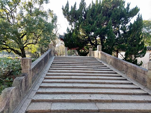 出了公园西门,孔庙的门口,有一条直道,就是华府出行的路上,唐伯虎第一次遇见秋香的地方。照片的左边是孔庙,中间正对着的是汇龙潭公园的西门,右边是水潭,可以直接看到魁星阁。直道右边去水潭途径的牌坊,也是电影里出现过,上书“高仰”两个大字。